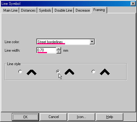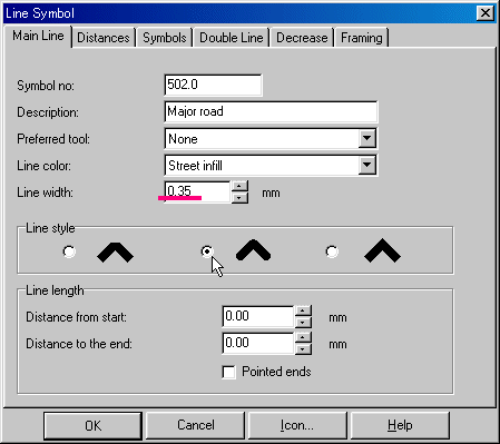 MainLine設定 width:0.35mm color:Street infill Line style:真ん中の端点丸いやつ
