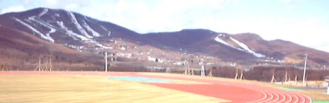 今まで大会で使用されたことのないエリアを使用する。 その地域を1999年5月完成予定の陸上競技場から望む。 |