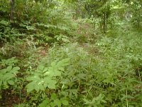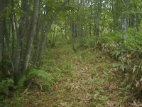 通行困難の笹ヤブの中の切り開き。 草の繁った小径より 遥かに通りやすい。 |