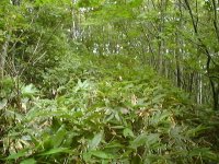 両側にササが繁って 森に入り難くなっています。 |