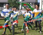 大声援に囲まれながら第一走者が森の中へ消えてゆきます。 |