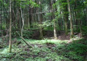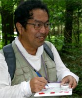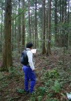 | フィールド調査中の山川氏 | 通行可能度バツグンの森! |