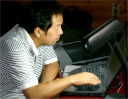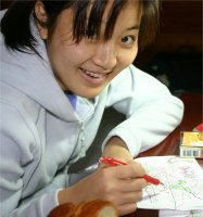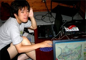 | ジェネシスマッピング社の和泉くん。 調査と作図にいそしんでいます。 |