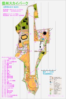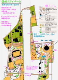 | 全国一斉オリエンテーリング大会 長野会場 (2001年度)に使用した地図とコースを掲載します。O-map「信州スカイパーク」は今回の大会のために新規に作成されたO-mapで、この地は初めてO-map化されました。 |