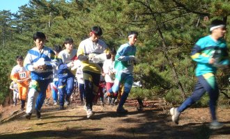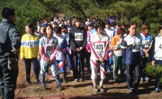 会場グランド横の丘の上から。 応援団が見守ります。 |