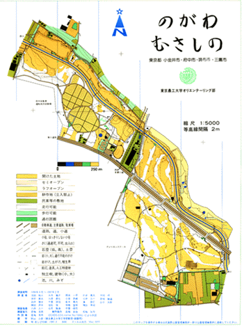 1997 年 3 月の東京農工大学オリエンテーリング大会に使用されたテレイン。東京理科大学の「のがわ」に西側の武蔵野公園を広げてリメイクしたものである。