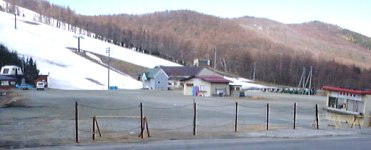 会場予定地のつばくろスキー場 さすがに4月だと残雪いっぱい。 |