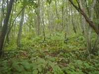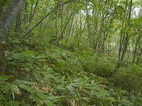 両側にササが繁って 森に入り難くなっています。 |