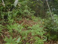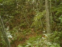 通行困難の笹ヤブの中の切り開き。 草の繁った小径より 遥かに通りやすい。 |