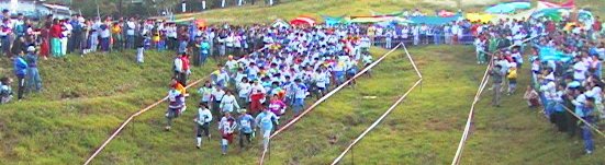 大声援に囲まれながら第一走者が森の中へ消えてゆきます。 |