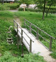 | 高原は秋の匂い。おいしそうな栗。 | 家族旅行村にある橋。 |