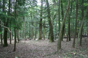 | フィールド調査中の山川氏 | 通行可能度バツグンの森! |