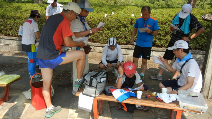 | 13.08.16 | 初中級者向け基本技術教室兼練習会の「手続き技術編」に続く「思考技術編」を10名の参加を得て8月10日開催しました。今回も大変好評で午前の講習の後、猛暑の午後2時間ほど1.8kmのコースを2~3回走り ルートの違いによる時間、チェックポイントなどの差を体験してもらいました。コース図とラップ解析です。 |