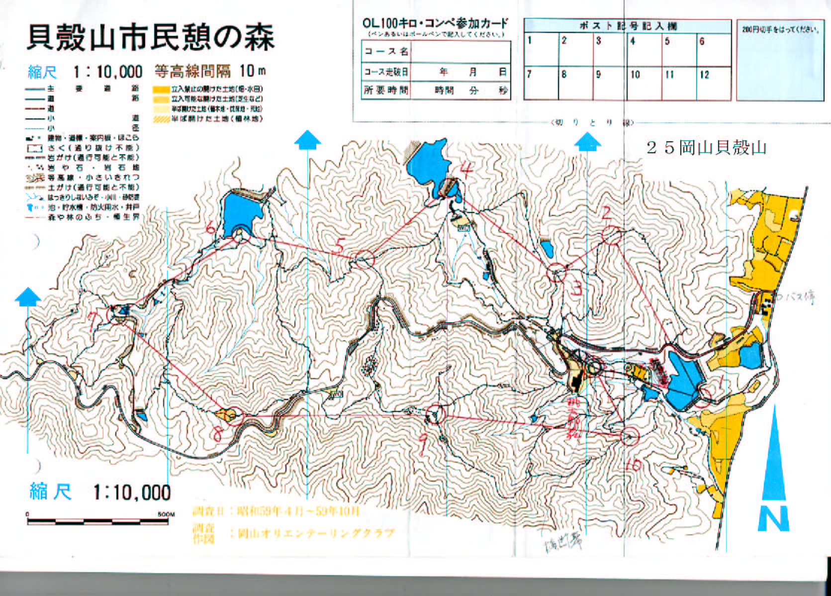 | 23.05.02 | 紹介が遅れて申し訳ありませんが、3月に新見健康の森にセミパーマネントコースを設置しました。「上級者向けコースA」、「中級者向けB」、「初心者/初級者者向けN 」と「フリーポイント用」の4コースです。現地には写真のようなコントロールとピンパンチを設置しています。今後どのように展開していくか、まだ最終的に決めていませんが、正規のパーマネントコースに登録する方向で検討する予定です。 距離は短めですがそれなりに楽しめると思いますのでご利用ください。コース地図は@200円+送料です。事務局まで連絡ください。 |