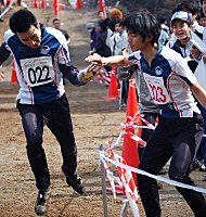| 東北大学2走・長縄から 3走エース・日下へ 優勝候補筆頭の東北が トップグループから 6分離されている。 | 名古屋大学優勝! 22年ぶり!2回目 名古屋大学3走・崎田 快走して逃げ切り | 予想以上の戦果。 これも練習の成果。 |