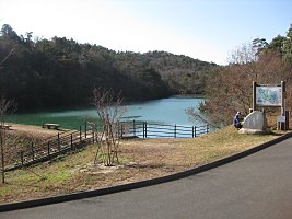 | JR尾道駅です。いい天気。 目の前は港です。 | 尾道駅から西にロードを走って3.5km このあたりから狭い歩道を 歩いたり走ったりで登ってゆきます。 背後は鳴滝城山。(写真場所1) | 神社。(場所2) ここまでの歩道は コンクリート舗装 されています | 八注池。(場所3) 車でもアクセスできるようです。 トイレも整備されています。 |