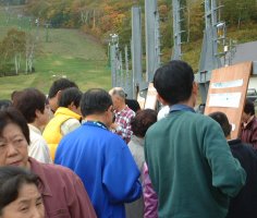 オリエンテーリング初心者の方が約20名参加してくださり、紅葉の斑尾高原を楽しんでいました。 |