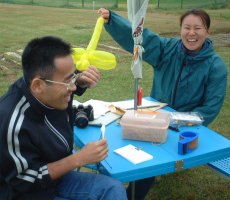 | ひんやりとした斑尾高原で、ニュースポーツフェスティバルin長野は行われました。色々なニュースポーツ、レクリエーションが一同に会して行われており、オリエンテーリングもワークショップを出しました。