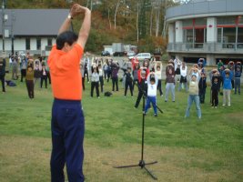 参加者全員で体操です。 |