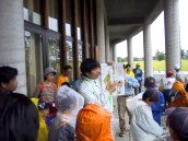 多くの人が参加しました。 急遽、やまびこドーム下で 競技説明をしています。 |