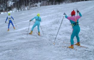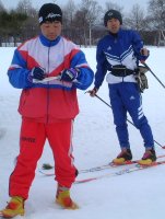 運営者たち。 なぜスキーを履いている? |