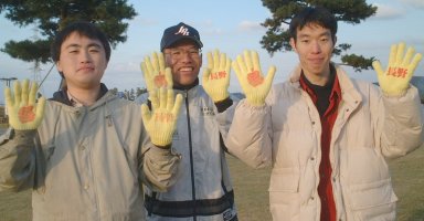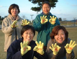 拡大写真はこちら 「長野」と書かれた黄色い軍手は、 名誉団長の島崎君が製作 |