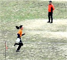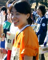 2走:元木友子 チェンジオーバーに向かって走る。 2走で順位を4位に引き上げる。 |