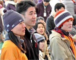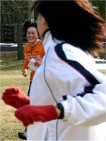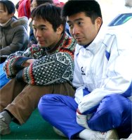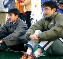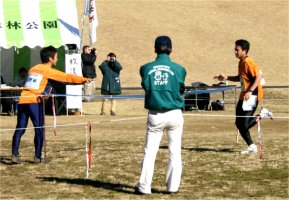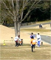 | 会場風景:森林公園の運動広場。広かった。 | 表彰式を見る 金田哲生と矢島健一郎 |