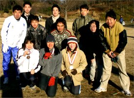 8日のモデルイベントでは大会の本テレインを開放するという今まで例の無い方式。森林公園で今まで数多くの大会が開催されており遠方到来者にも不利が無い様にとの配慮らしい。 10:00ごろ矢島くんと到着して、森林公園の南半分のPCコースを結局全部回ってしまった。 モデルイベントには金田・加々美も参加していて加々美は北部分・南部分すべての範囲のPCを回ってきたそうだ。復活に向けて着々と体を作っているようだ。 この日に森林公園を走れたのは明日のレースに向けて大いに参考になった。 さて、長野県の宿は深谷。深谷の駅舎に歓声をあげ、到着したのはトロン温泉旅館。 石川、黒田も到着してみんなで深谷城跡あたりに走りにいく。どこが城跡なのかよく判らない、あやしげな公園をぐるぐる回ってこの日は終了。昼間にも走ったからまぁこんなもんだろう。深谷の街は狭い。もうコレで完全制覇といえるだろう。 夕食を終え、夜の深谷にアルコールを求める。これから到着する峯村嬢に軽蔑されない程度を心がけるがそんなことは全くの杞憂であった。(以下省略) あーーーっつという間に翌日の会場。長野メンバーが揃って皆も気分が入っている感じ。 金田は1走で気合充分だし、立花は初めての3走にドキドキしているようだ。元木悟はメンバー表を頭に入れて作戦を立てている。峯村と元木友子と高橋美和の3名はマイペースに見えるが、彼女たちが一番入賞の可能性があるので、自然に周囲もそれに期待する。 シニアは最下位にならないことを目標にミスパンチだけはしないことを確認しあう。とりあえず、指差し呼称。これ安全のキホン。 M21は鳥川が都合で来られなくなったのだが北海道の崩壊チームから人員を調達できたので、なんとかレースできた。 MEの中間ビジュアルの丘から、オレンジ色のウェアが駆け下りてくる。金田トップで中間を通過。おーすげー! MSの矢島も中間をトップと3分差で通過。かなりいいペース。後半で少しミスで沈んだが、4回目のオリエンテーリングレースにしては上出来なペースで木村にタッチ。 いきなり1番から昨日の経験が活きる地帯に突入。おー。今日のフラッグはササに埋め込んであるぞ。 森林公園は比高が少ないため、かなり快調に走れる。スピード感を保ちながら淡々と前半ビジブルまでをこなす。後半になると、だんだんと前のランナーに追いついてくる。おーなかなかいいペース。抜くと嬉しくなってますますペースを上げる。それほどバテないうちに石川にタッチ。 さて、引き続き会場での応援。特にWEは入賞かどうかの微妙なところ最終コントロール手前までほぼ全員が出て、3走・高橋美和の帰りを待つ。 うーなかなか帰ってこないぞー。ありゃー、神奈川に逆転されてしまったー。 「美和さ〜〜ん」 峯村の声が森に消えてゆく。 キター-----------------------------------------! 人気者の美和が会場に姿を現し、6位入賞が確定した。 引き続き石川とビジブルで待つ。想定到着時刻おり少し遅れて石川も通過。そしてフィニッシュ18位。MEも18位でフィニッシュ。 冬晴れの全日本リレーは幕を閉じた。ME/WEが3人リレーになったので、応援する時間が少なくなったなぁというのがちょっと残念。 |