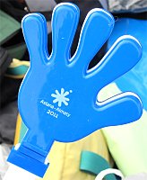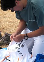 | 長野県チーム記念写真(拡大) あれっ? 荒川くんがいないぞ | 準備する丸山と隆昭 | 応援グッズ カザフスタンから仕入れてきた | 準備する倉澤 |