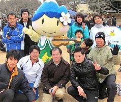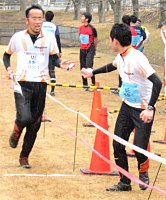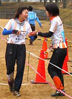 | 長野県男子第1走者 丸山茂樹 いぇいっ(拡大) | 長野県女子第1走者 高橋香織(拡大) | 第1走者・丸山から 第2走者・林へ | 第1走者・香織から 第2走者・美幸へ |