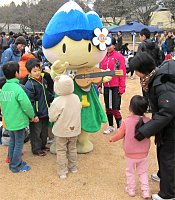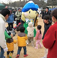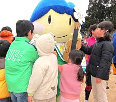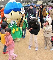 | 会場に登場したアルプちゃん | 子供に大人気 | 来年の開催地・松本をPR |