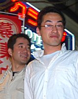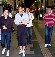 | 総会が終わればすっかり夜。 夜の権堂に繰り出す。 美和・丸山・黒田・加々美 |