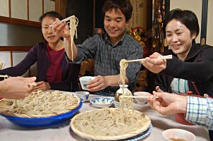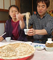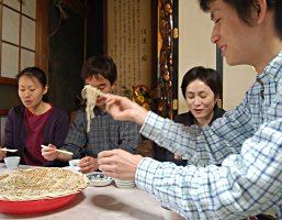 | 目にも止まらぬ手つきで ソバを食べる元木 |