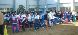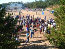 会場グランド横の丘の上から。 応援団が見守ります。 |