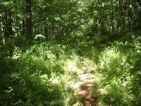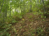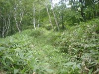 通行困難の笹ヤブの中の切り開き。 草の繁った小径より 遥かに通りやすい。 |