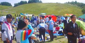 大声援に囲まれながら第一走者が森の中へ消えてゆきます。 |
