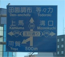 東名高速道路の起点(東京IC)・首都高速道路用賀ICに関する標識群