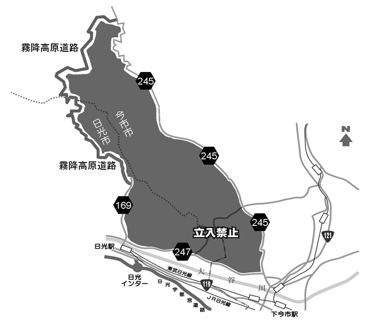 ○ クローズテレイン 『日光霧降』 (2000 年 3 月 日本学生オリエンテーリング連盟 作成) 『日光所野』 (1999 年11 月 〃) ○ O-マップの配布 インカレ実施規則18.7 に基づき、本要項の発行と同時にO-マップ『日光霧降』を各加盟 校および準加盟校に配布する。各地区学連担当者宛に送付するので、各校は担当者より受け 取ること。 立入禁止区域は日光市、今市市の山林の内、県道169号【青柳日光線】、県道245号【青柳今市線】、県道247号【今市日光線】、及び霧降高原有料道路で囲まれた区域である。 ※ 禁止区域外周の県道169号【青柳日光線】、県道245号【青柳今市線】、県道247号【今市日光線】、及び霧降高原有料道路は除く。 ![]() 【追加項目】