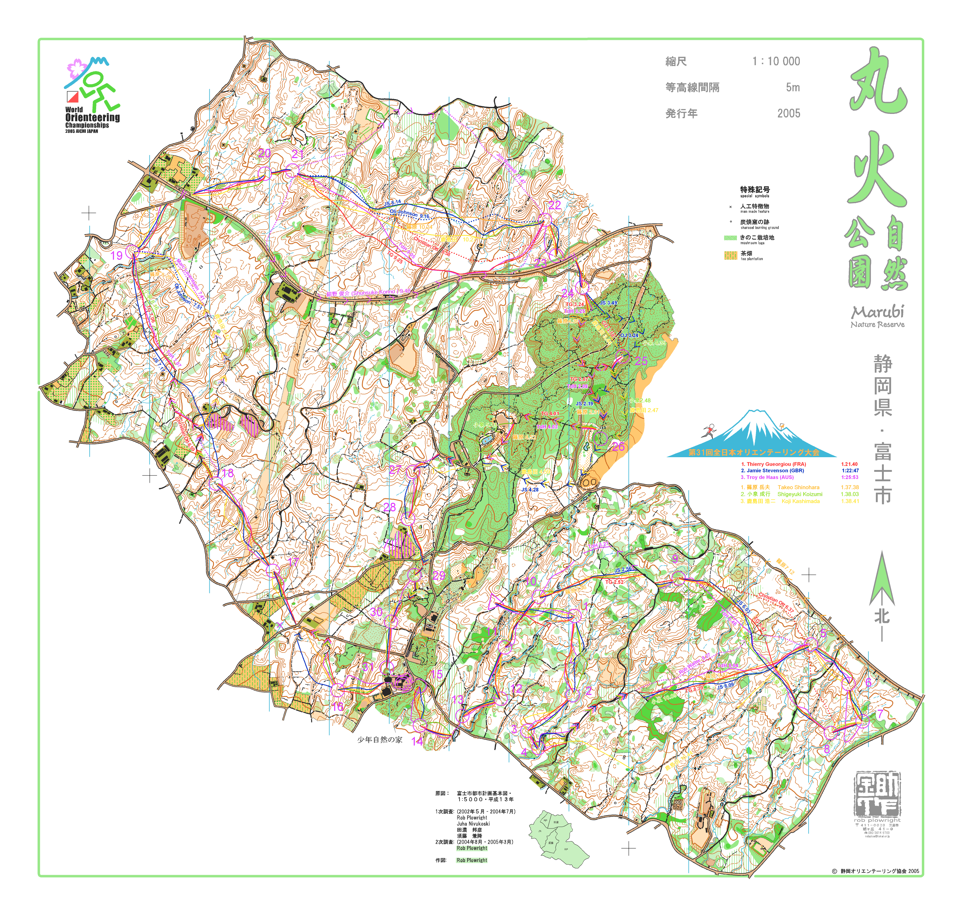 左地図:外国人選手上位3名を中心としたルート図 右地図:外国人選手と日本人選手それぞれ上位3名のルート図