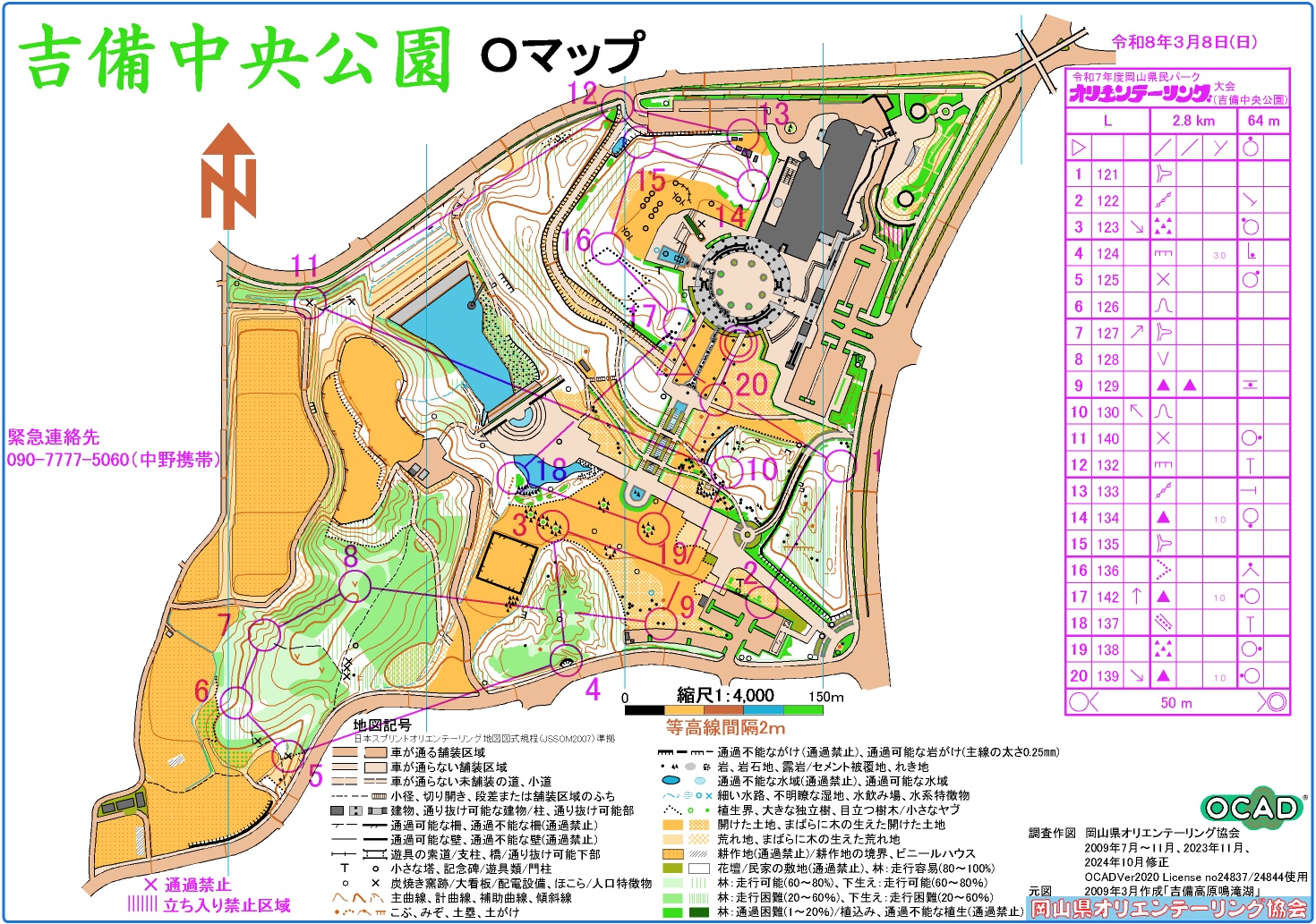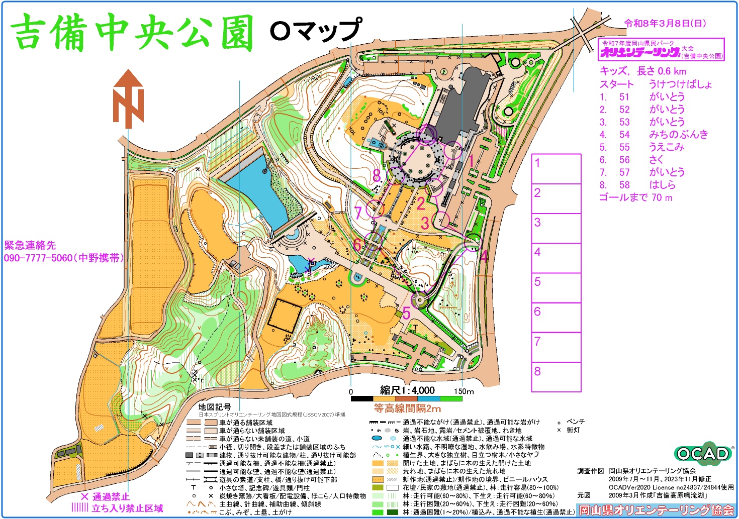 3月8日開催の令和7年度岡山県民パークオリエンテーリング大会(吉備中央公園)の成績表、ラップ解析、コース図(L、S、ハッスル、N/体験)、キッズ)、スナップ写真を掲載しました。| 26.02.01 |