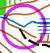 コントロールの円の中に、コントロールが設置されている特徴物が複数あった場合に、それらの中でコントロールが設置されているものがどれかを示す方角を矢印で記述します。 左の図の場合は、コントロールは「道の分岐」に設置されていますが、地図上のコントロールの円の中には、2つの「道の分岐」が存在します。この場合は、この2つの「道の分岐」の相対的な位置として「北西」が選択されます。左上を向いた矢印(以下の例)で示されます。 |